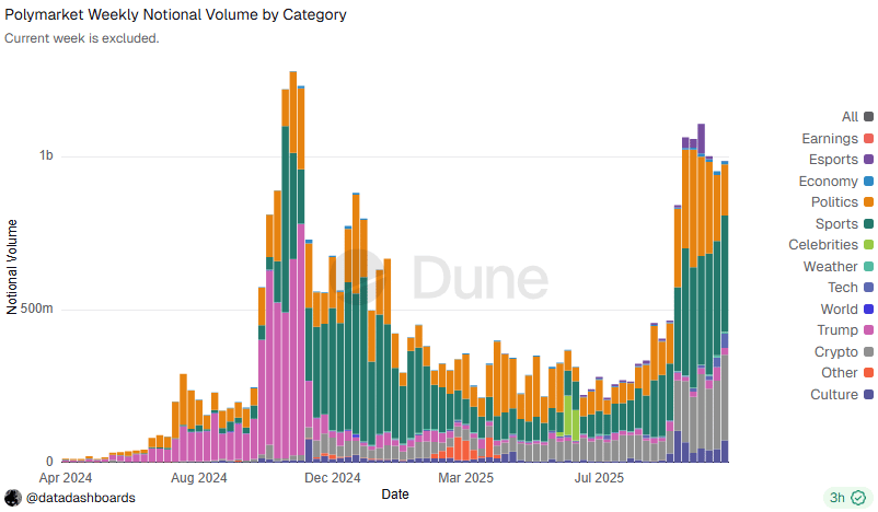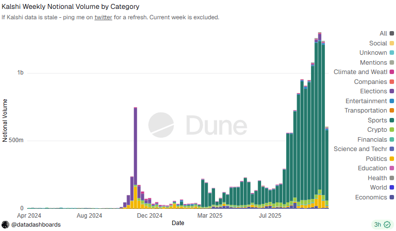 On Kalshi, Sports is the clear story, with 85.5% of weekly volumes coming from that category. Regardless of platform, it is now undeniable that Sports is becoming the primary driver of prediction market growth.