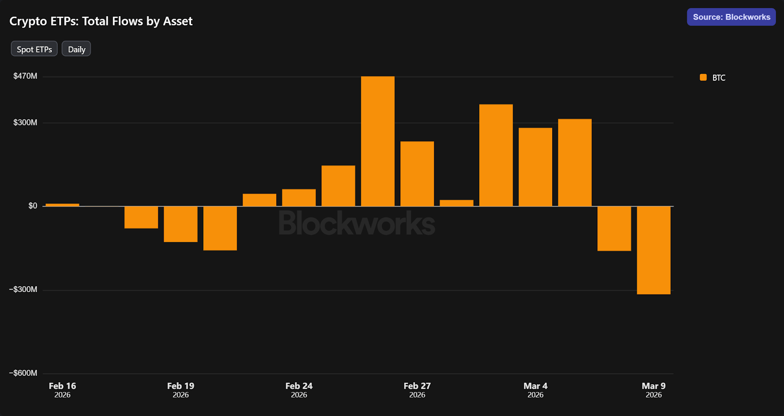 However, BTC’s positioning doesn’t look solid, as net outflows have resumed over the past two days after nine consecutive days of positive inflows consisting of roughly $2 billion.
