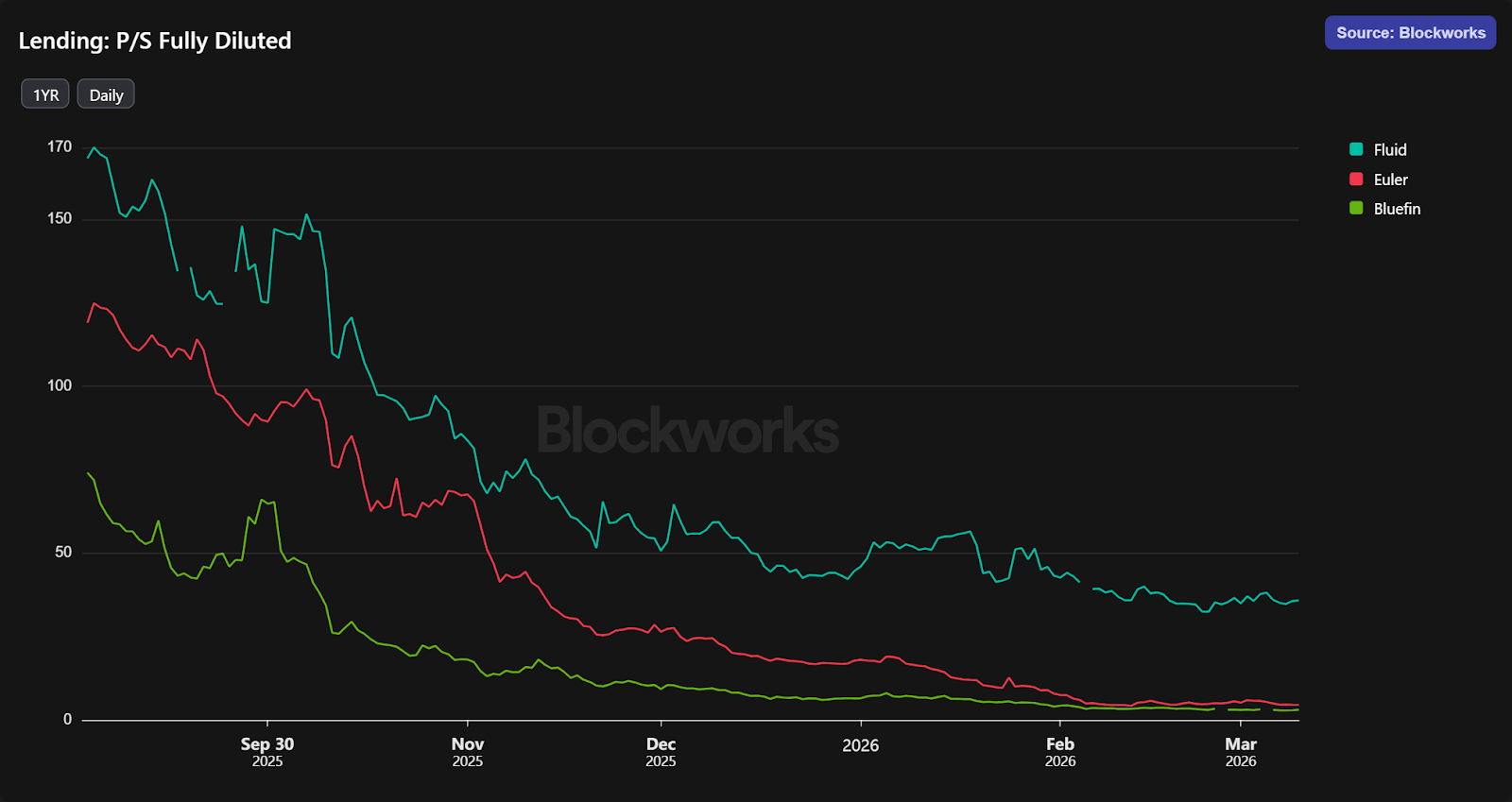 This divergence between price performance and underlying revenue suggests that recent strength in lending tokens may be more reflective of short-term positioning and sector rotation than a clear improvement in fundamentals. However, for market participants monitoring the space closely, any pickup in borrowing demand or protocol activity would likely translate quickly into higher revenues and improved token fundamentals, positioning attentive investors to benefit from an early recovery in lending activity.