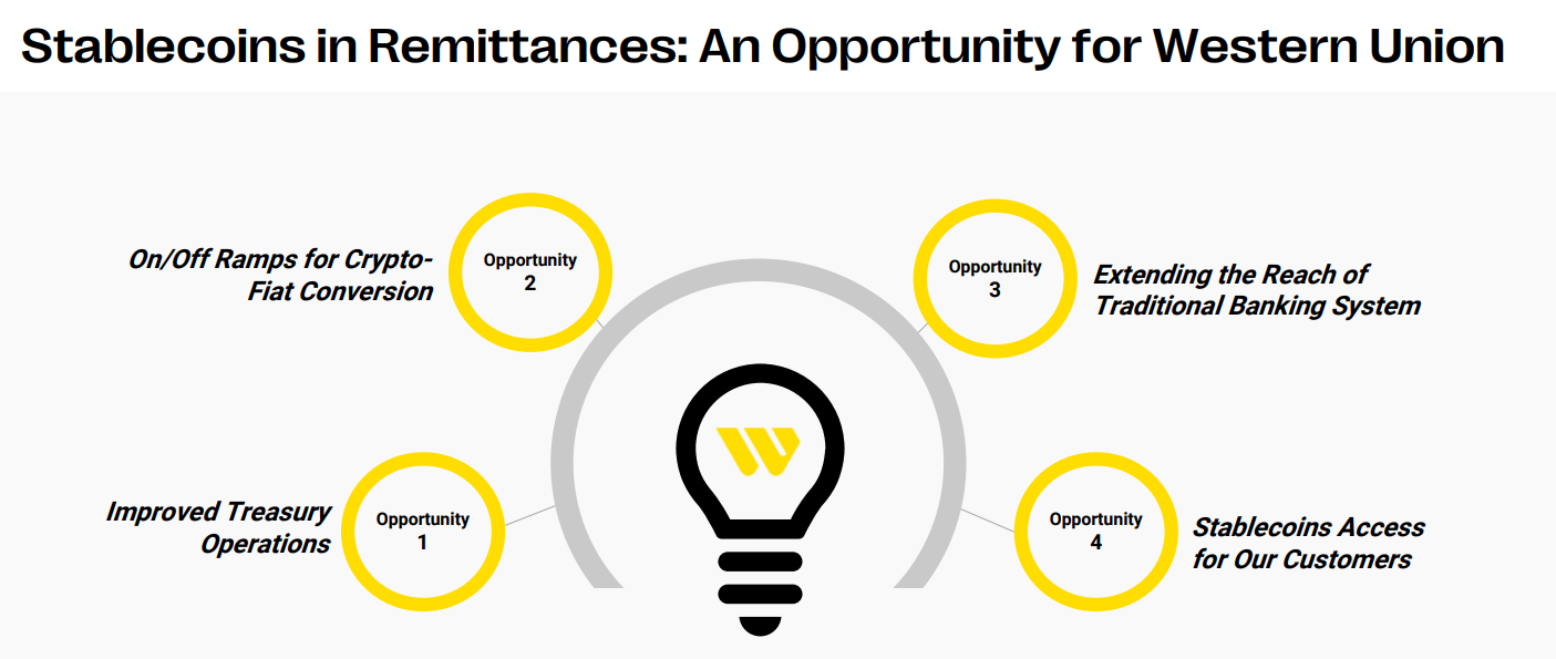 Western Union’s (WU) Q3 2025 financials outlined an explicit “Stablecoins in Remittances” initiative focused on four verticals: treasury optimization, crypto-fiat on- off- ramps, expanded banking reach and direct customer access. That’s corporate speak for “we’re building a stablecoin bridge.” After eight straight quarters of digital revenue growth and double-digit transaction expansion, the firm is now positioning itself as a compliant layer between regulated banking rails and permissionless stablecoin liquidity.