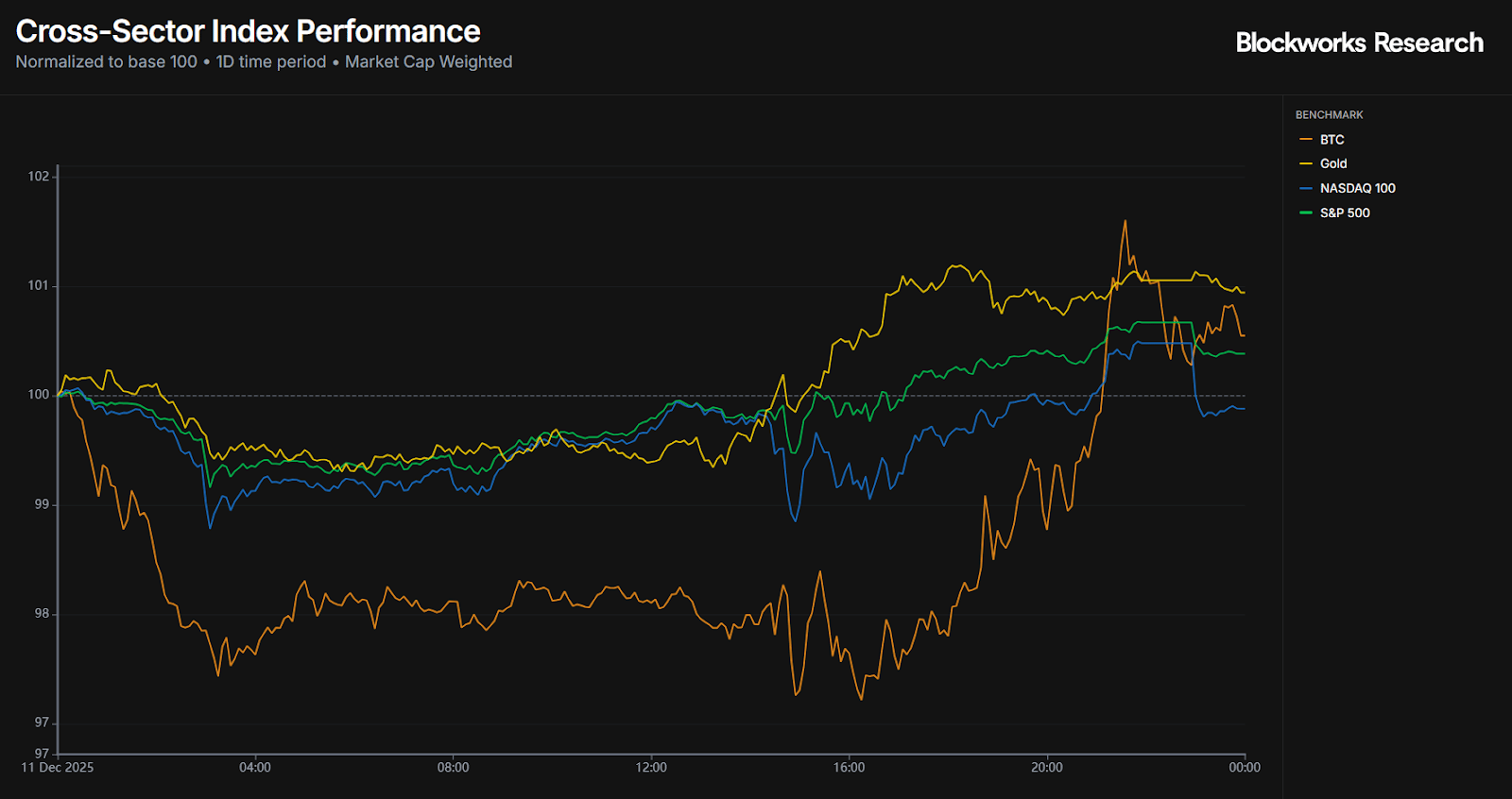 Performance across major assets diverged yesterday. Gold, BTC, and the S&P 500 posted gains of 0.95%, 0.55%, and 0.39%, respectively, while the tech-heavy Nasdaq slipped -0.12%.