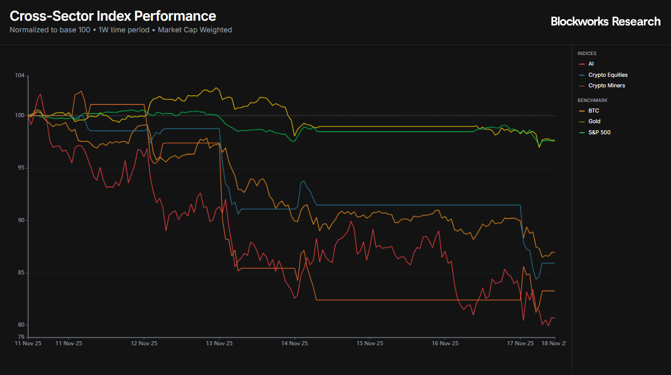 Hi all, happy Tuesday! Markets kicked off the week in full risk-off mode as Fed cut doubts, liquidity stress and “AI bubble” fears dragged equities and crypto lower. BTC and most sectors are firmly in the red. Against that backdrop, we zoom in on one of the few bright spots: Near Intents’ rapid growth as a cross-chain liquidity hub, driven by ZEC demand and its Zashi integration.