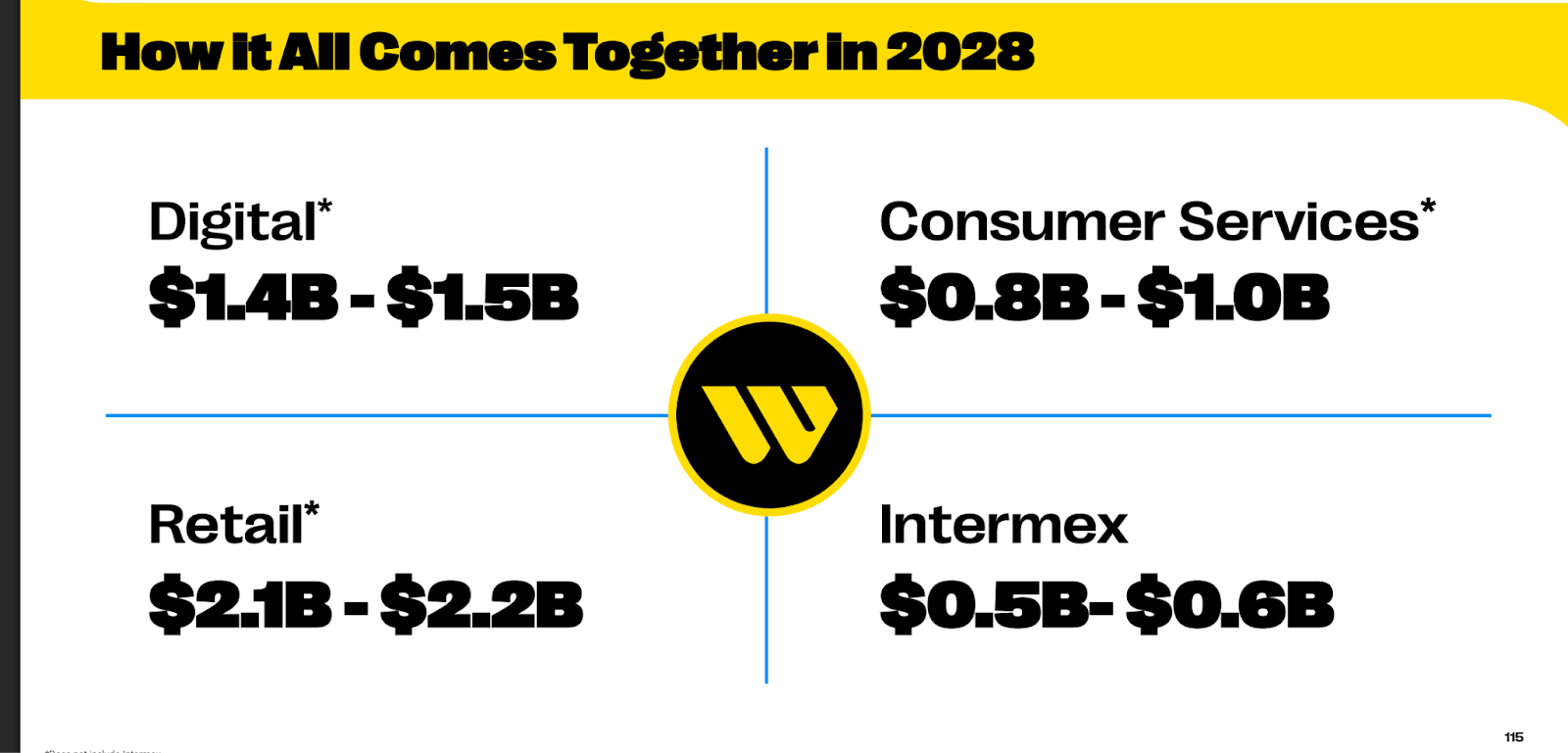 Beneath the crypto angle, the core business is bifurcating. Digital transactions grew 13% in Q4 2025 and now represent 39% of consumer money transfer volume. Consumer Services hit $543M in FY2025 revenue, growing 26% adjusted. The $500M Intermex acquisition (closing Q2 2026) adds 6 million LatAm-focused customers who become immediate targets for digital cross-sell and eventually USDPT.